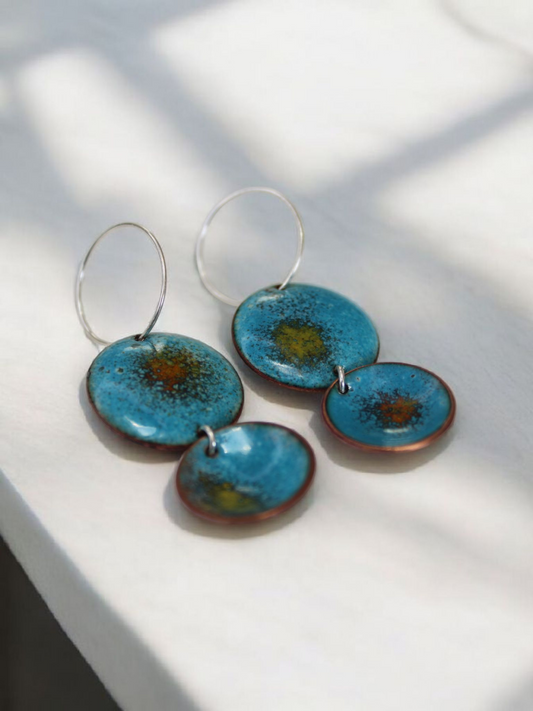 Teal Domed Earrings
