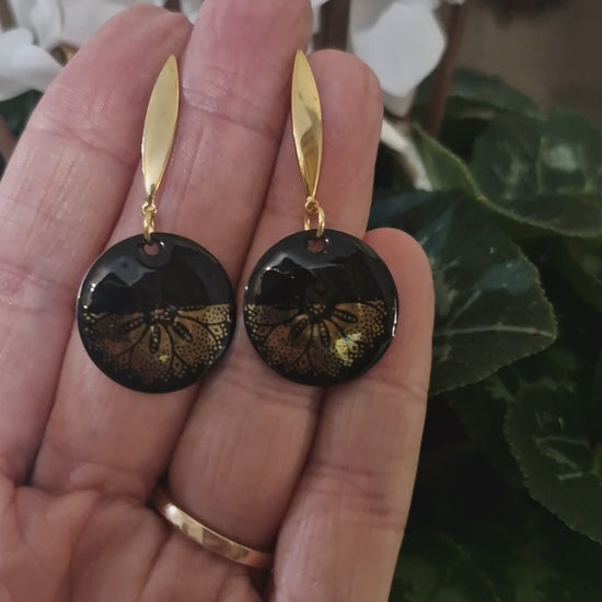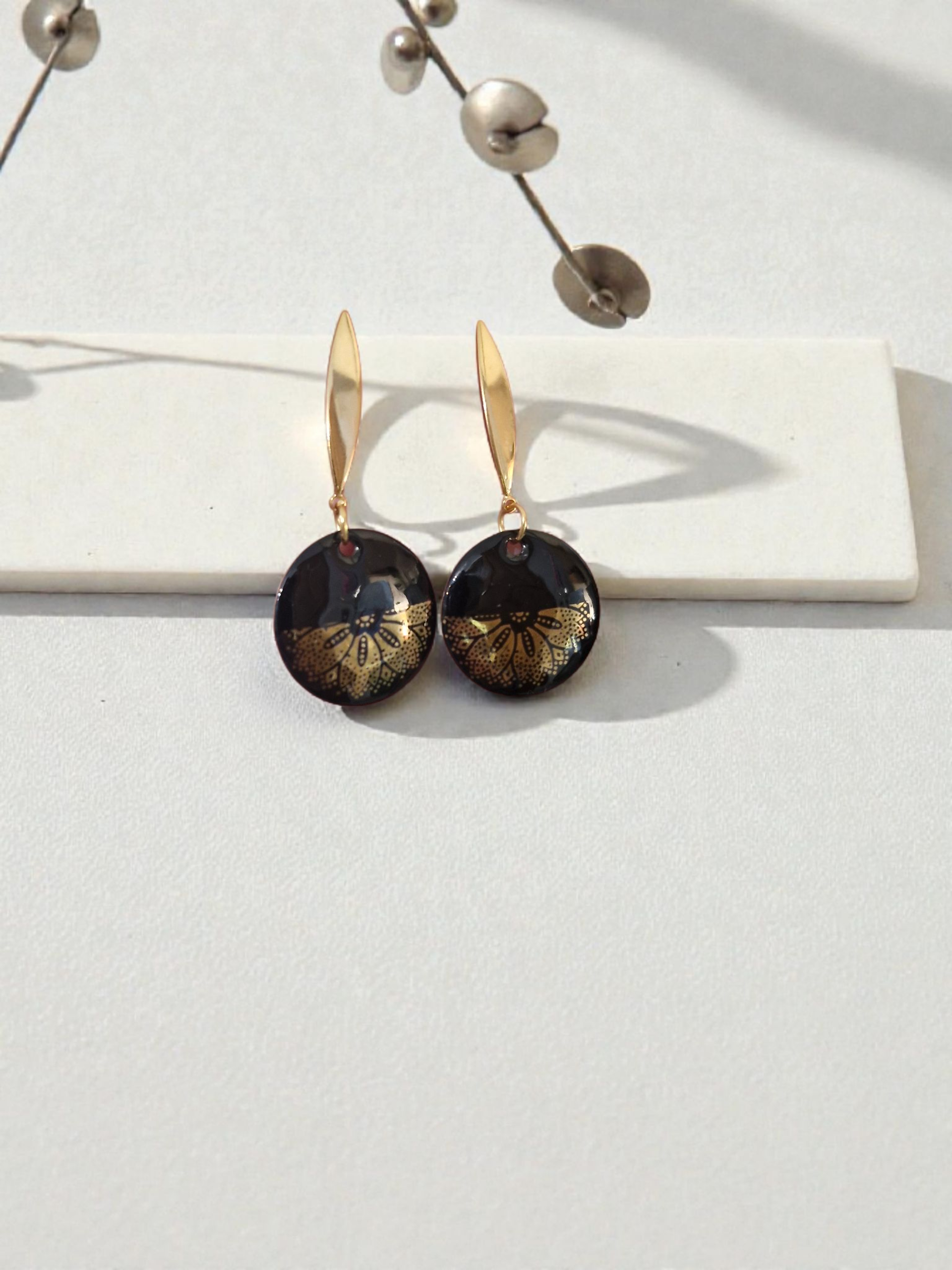 After Dusk – Sleek and radiant, these earrings catch the last shimmer of light as the night awakens. Black and gold together in a chic, modern flow — effortless glamour for evenings that linger beyond twilight.