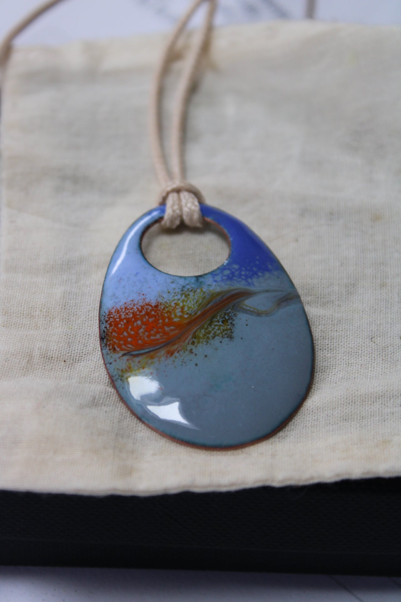 Deep slate grey meets a warm flicker of rust, like a glowing ember floating across dusk.