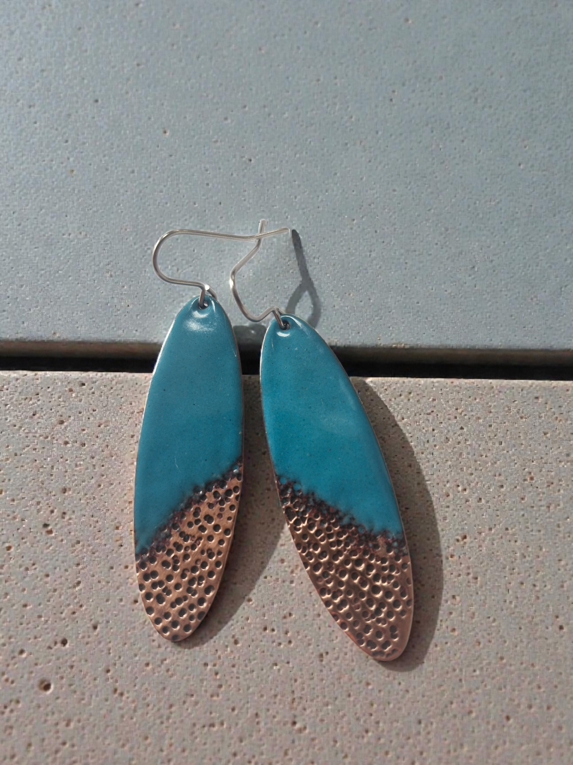 Several layers of glossy navy blue enamel makes these statement earrings so classy.