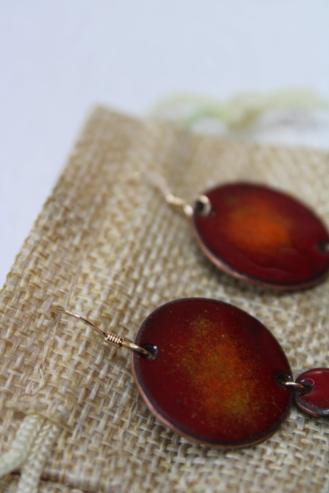 These two-piece drop earrings were a true joy to create, each one carefully crafted from copper and adorned with bold block colours and fresh, bright designs.